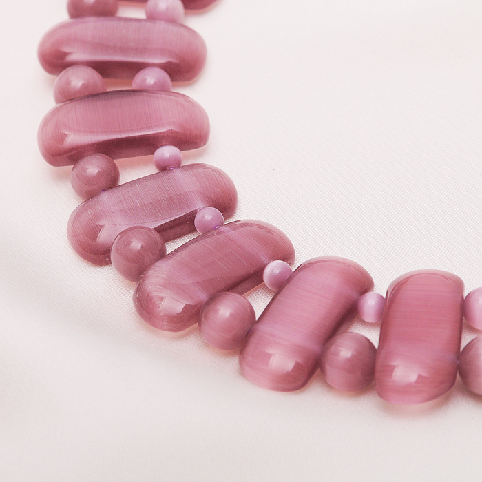 Ни один стиляга не будет выглядеть современно без искусно подобранных украшений, которые завершат его образ! Бижутерия — это современная недорогая альтернатива изделиям из золота и прочих драгоценных металлов. Колье "Кошачий глаз" пластина через шарики, цвет сиреневый, 45 см — это то, что добавит вам шарма!