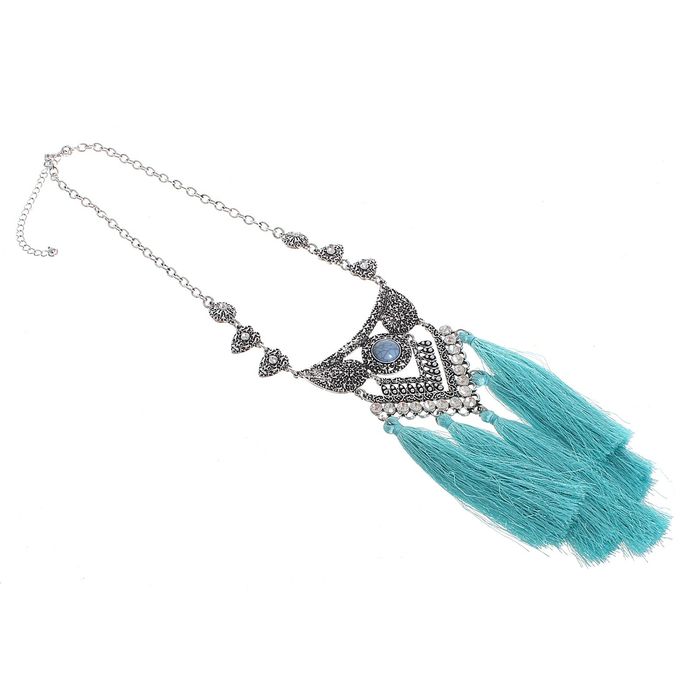 Ни один стиляга не будет выглядеть современно без искусно подобранных украшений, которые завершат его образ! Бижутерия — это современная недорогая альтернатива изделиям из золота и прочих драгоценных металлов. Колье "Массив кисти" геометрия, цвет бирюзово-белый в чернёном серебре — это то, что добавит вам шарма!