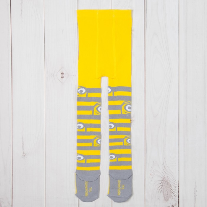 Колготки детские "Миньоны" полоска сер-желт., Гадкий Я,116-122см (6-7г.), 80%хл,17%па,3%эл