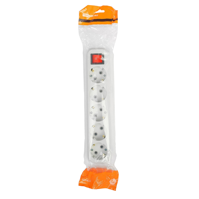 Колодка розеточная 5 гнезд 2П+3 с выключателем16А 250В белая TDM