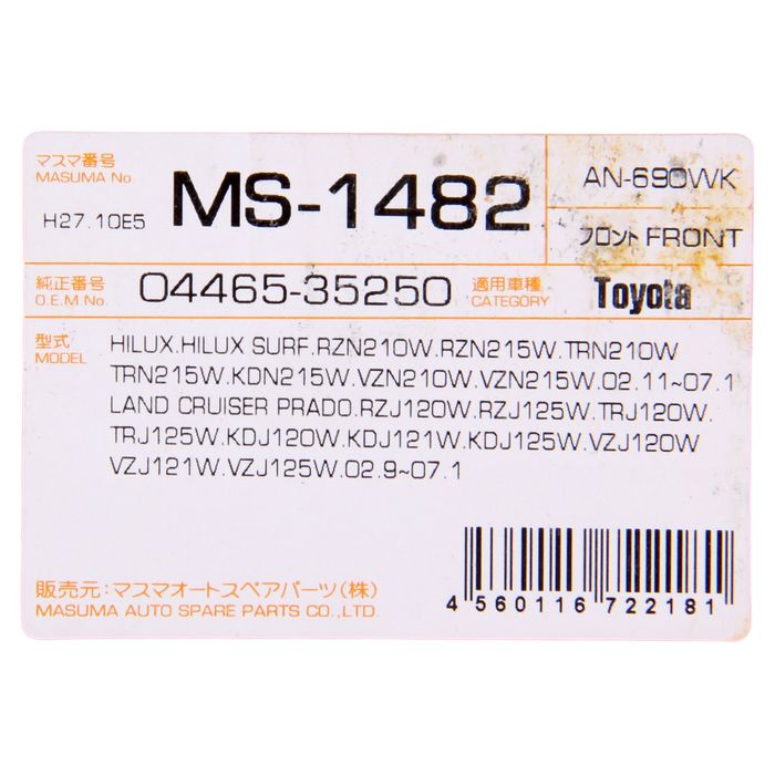 - 4605A481, 04465-0K090, AY040-TY074, 04465-35250, 04465-60320, 04465-60270, 4605A472, 04465-60330, 04465-35290