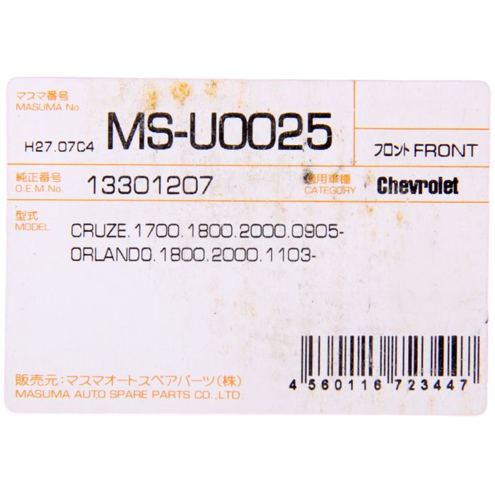 Колодки тормозные Masuma MS-U0025, передние