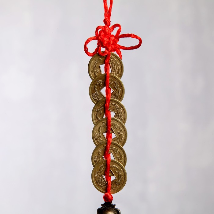 Колокольчик 6 монет по 4,5 см "Лакшми, иероглифы"