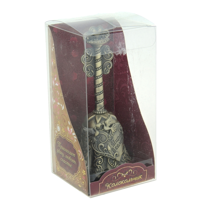 Этот красивый сувенир хочется оставить на видном месте, чтобы он радовал взор своими изящными формами. А еще, если периодически звонить дома или на рабочем месте, то удача повернется к вам лицом, дела пойдут в гору и в жизни станет гораздо больше «белых полос». Колокольчик упакован в дизайнерскую коробку, преподносится с наилучшими пожеланиями от чистого сердца.