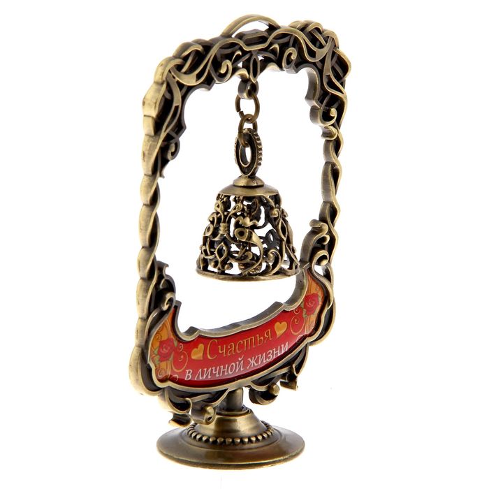 Колокольчик на подставке "Счастья в личной жизни" – изящный и оригинальный сувенир. Его чудодейственное звучание улучшает энергетические потоки и притягивает богатство, любовь, здоровье и положительную энергию Ци. А благодаря привлекательному дизайну он впишется в любой интерьер.
