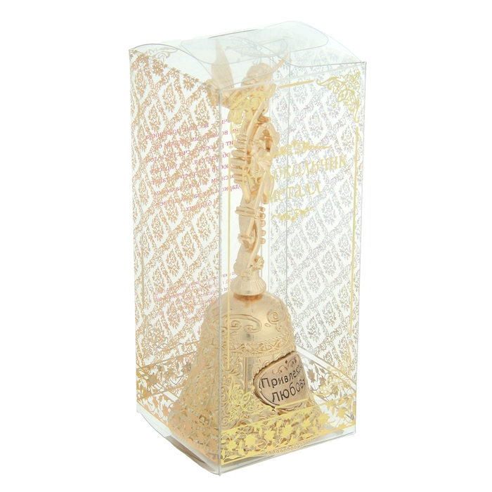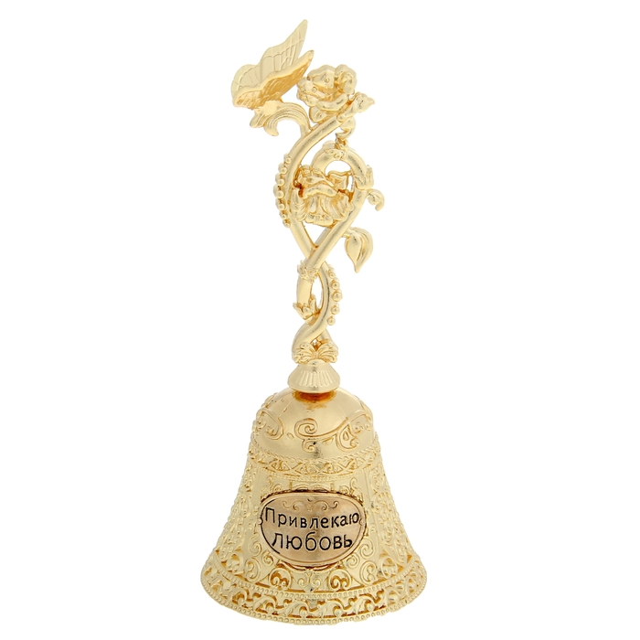 Во многих культурах мира этот старинный музыкальный инструмент считается благоприятным талисманом. Колокольчик с ручкой лилия "Привлекаю любовь" – талисман, который пришёл к нам из древней Руси. Небольшой и изящный, он выполнен из металла под золото в императорском стиле. Благодаря авторскому дизайну и душевным надписям колокольчик наполняет вдохновением его обладателя, создает уют в любом помещении, привлекает внимание всех окружающих.