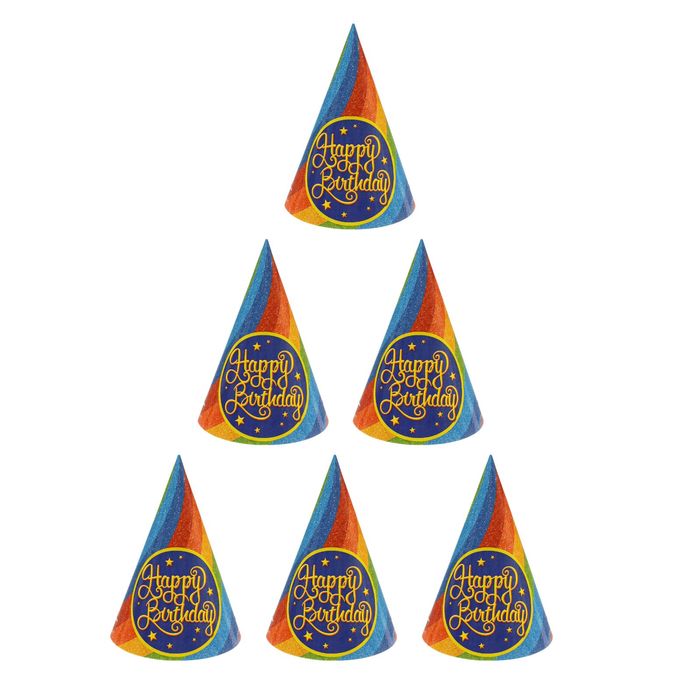 Колпак бумажный "С Днем рождения" радуга (набор 6 шт)