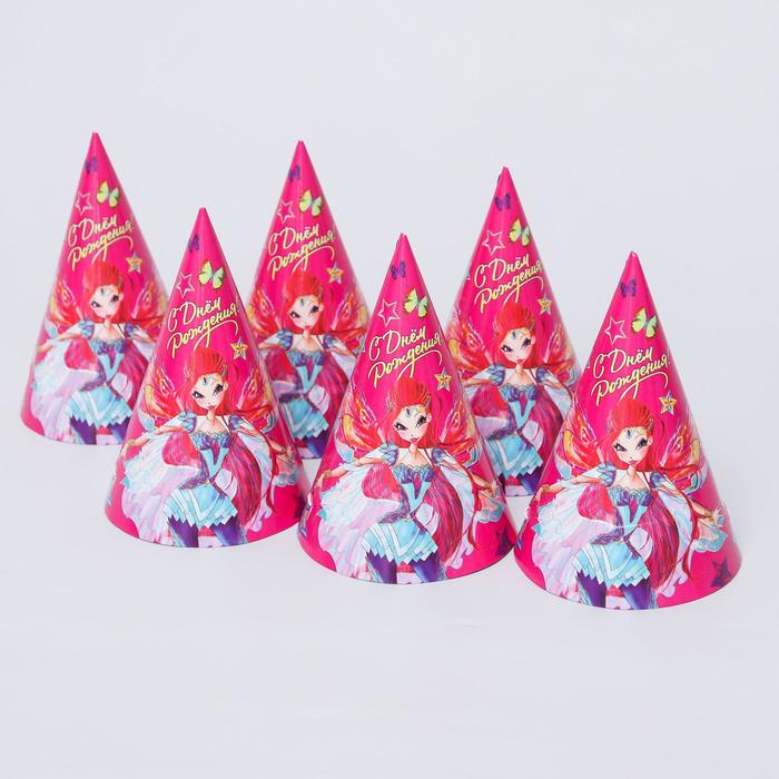 Колпак (набор 6 шт) "С Днем Рождения", феи ВИНКС: Блум