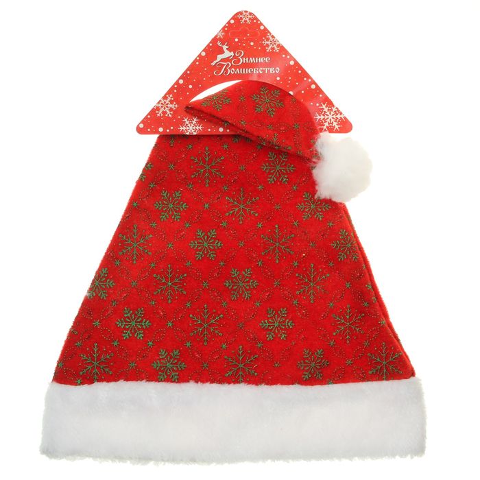 Колпак новогодний "Зелёные снежинки в узорном ромбе" 30*42 см