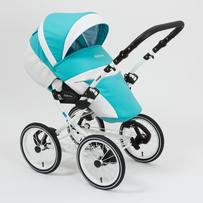 Коляска 2 в 1 Voyage Premium, 50% эко-кожа, белый перфорированный - бирюзовый в принт