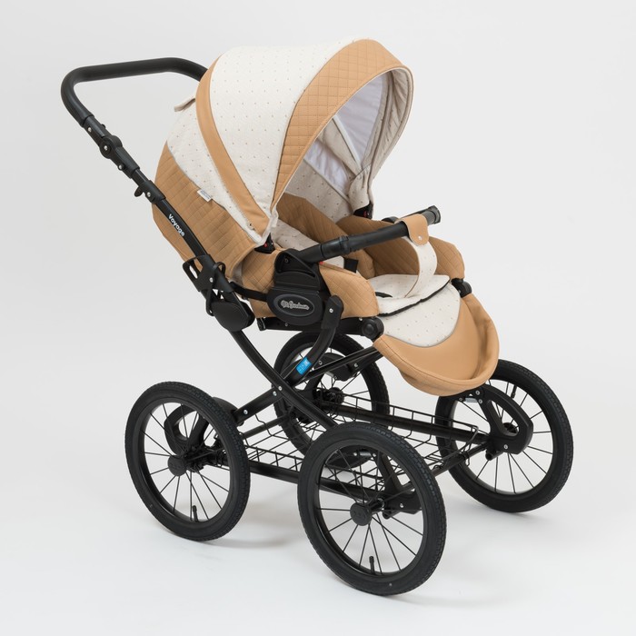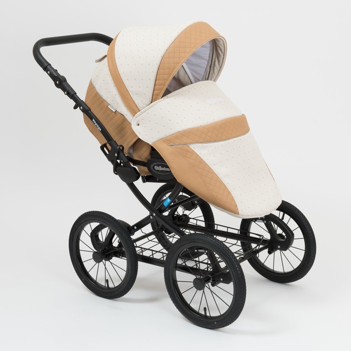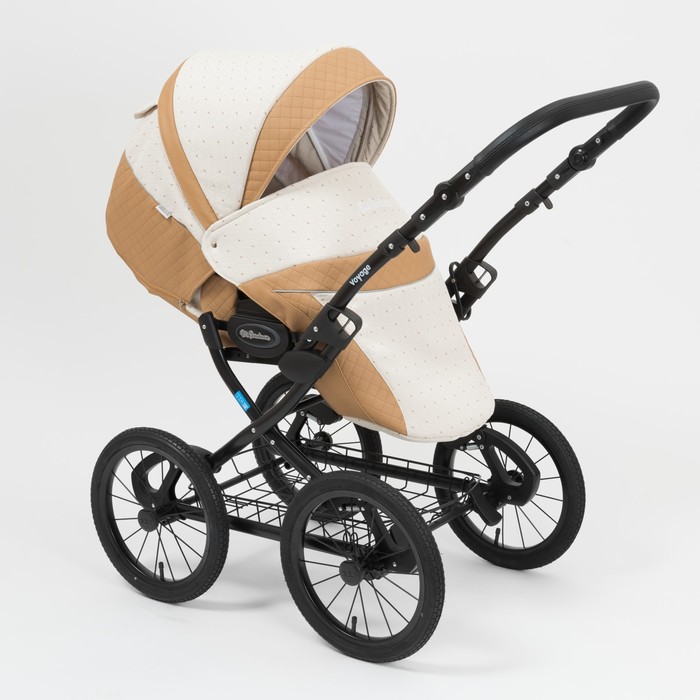 Коляска 2 в 1 Voyage Premium, 50% эко-кожа, тёмно-бежевый перфорированный - бежевый в принт 39495
