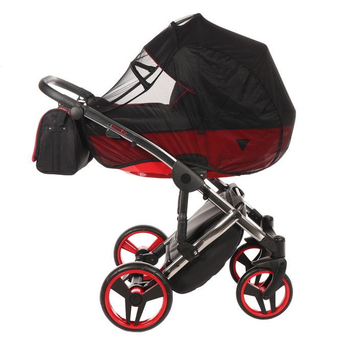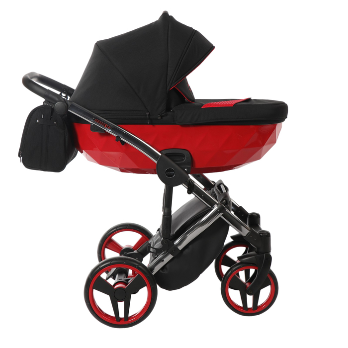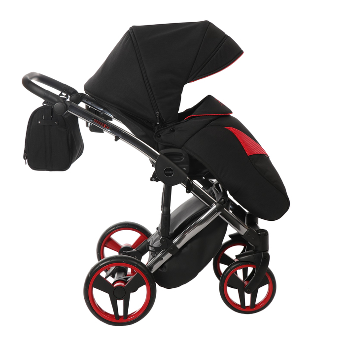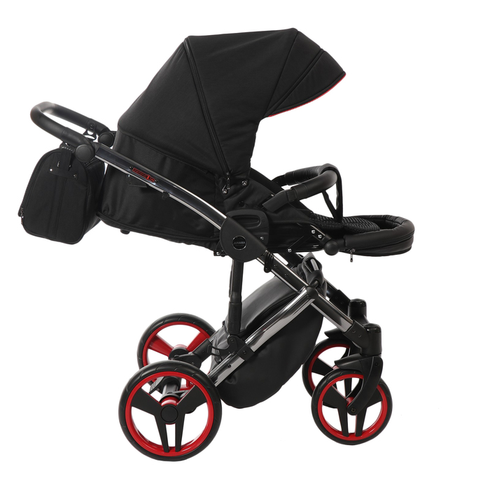 Коляска детская 2 в 1 JUNAMA DIAMOND SPECIAL JDS-01 (чёрный/красный короб/рама серебро)