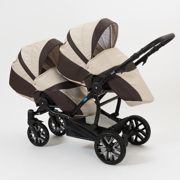 Коляска для двойни 2 в 1 Duet, 50% эко-кожа, коричневый перфорированный - бежевый