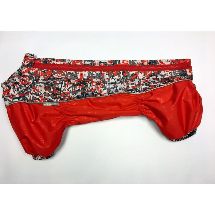 Комбинезон, предназначенный для прогулок в сырую погоду осенне-весеннего периода, выполнен из водоотталкивающей и ветрозащитной ткани. Светоотражающие полосы использованы в отделке двухцветного предмета одежды и на тракторной молнии, чтобы сделать вечерний выгул пса не только комфортным, но и безопасным.