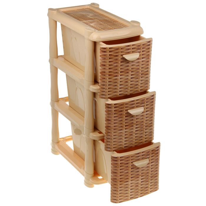 Комод 3 секции "Альт Деко. Ротанг" узкий, цвет бежевый