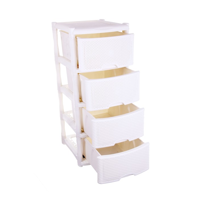 С помощью практичного пластикового комода вы правильно организуете хранение вещей. Изделие имеет жёсткую конструкцию за счёт цельных боковых стенок. Отсутствие острых углов делает его безопасным для ребёнка. Комод изготовлен из экологически чистого материала, не содержит вредных веществ.