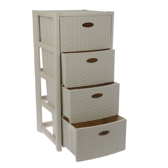 Сложно представить себе быт без хозяйственных товаров. Они нужны всегда и везде — дома, на даче, в офисе. Обратите внимание на Комод 4 секции "Стиль ротанг", цвет белый ротанг — полезное и качественное изделие с современным дизайном.