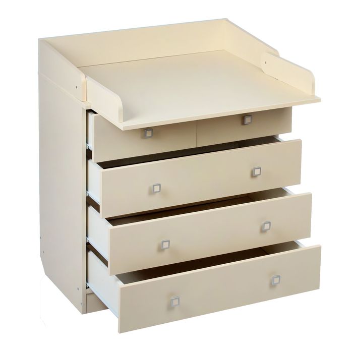 Изделие выполняет две функции. Вы сможете хранить в нём детские вещи и постельные принадлежности, а также использовать откидную столешницу комода для пеленания. Удобная съёмная конструкция позволяет сэкономить место в комнате и применять мебель, даже когда ребёнок подрастёт.