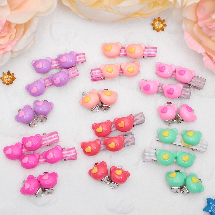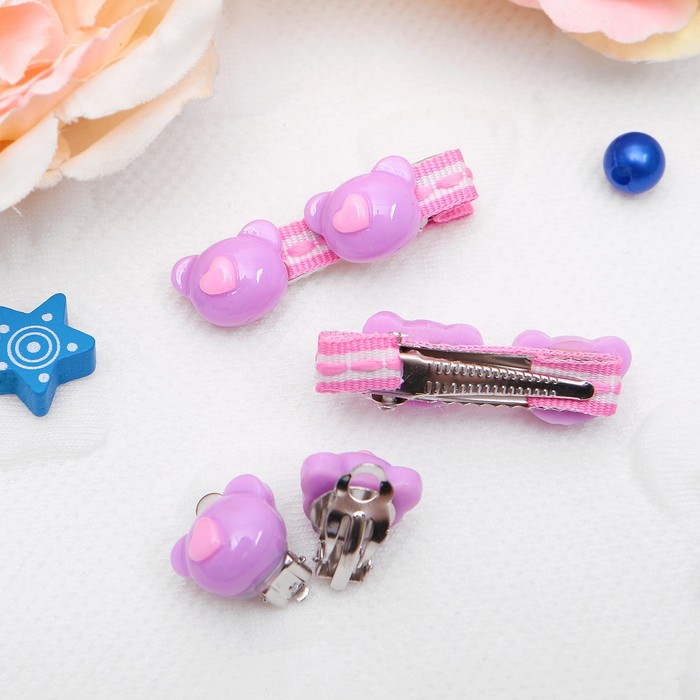 Комплект детский "Выбражулька" 3 предмета: 2 заколки, клипсы, мишки, цвет МИКС