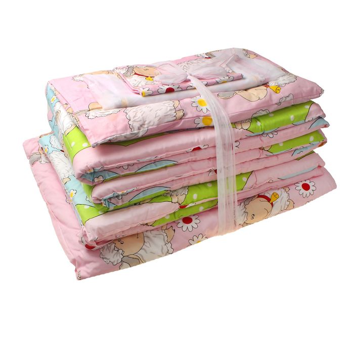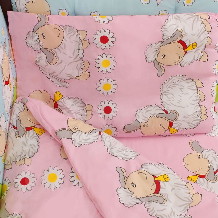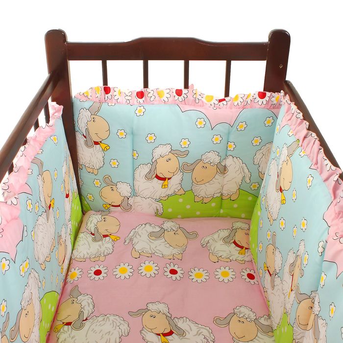 Комплект для детской кроватки (7 предметов), цвет розовый/зелёный, принт МИКС К-Б4