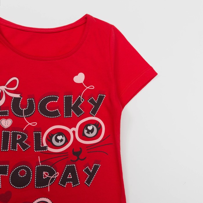 Комплект для девочки (футболка+бриджи), рост 128 см, цвет красный(набивка) Л940-3922