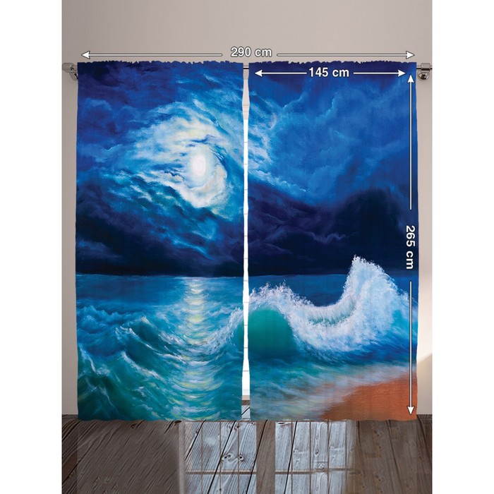 Комплект фотоштор "Ночной прибой", 145 х 265 см - 2 шт, разноцветный