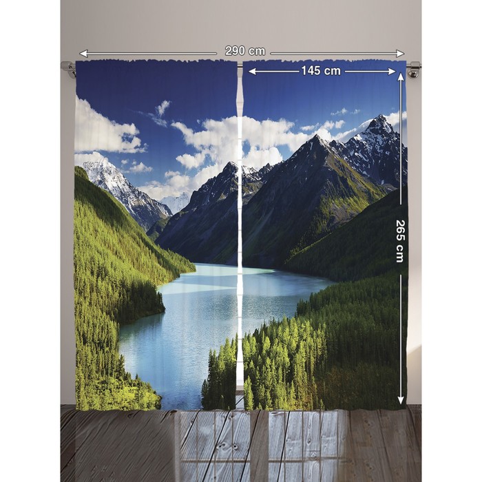 Комплект фотоштор "Озеро в горах", ш 145 х в 265 см - 2 шт, разноцветный