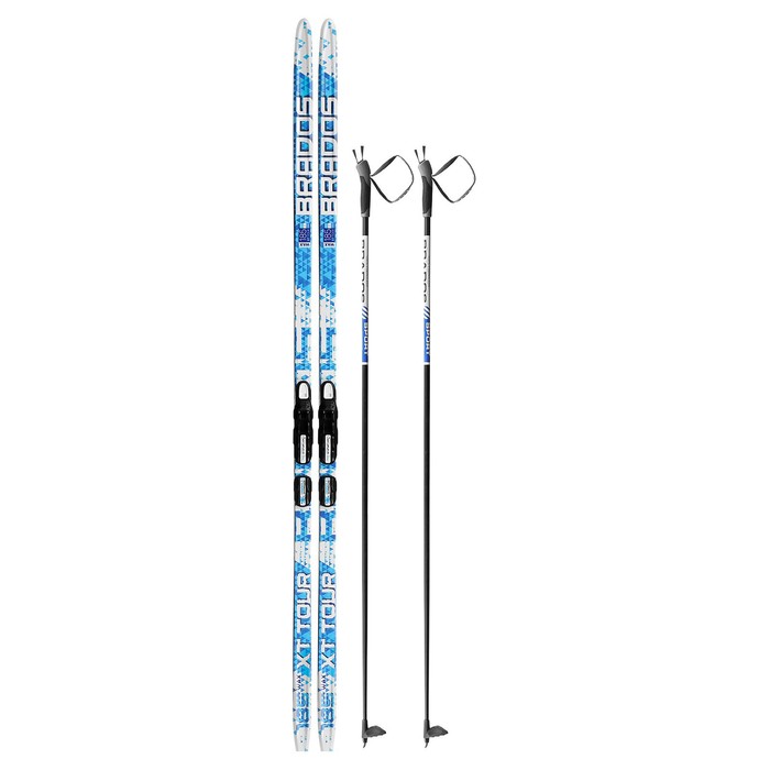 - Комплектация: лыжи, палки, крепления, зажим для лыж.