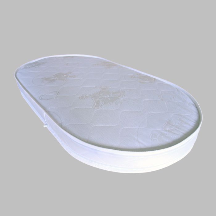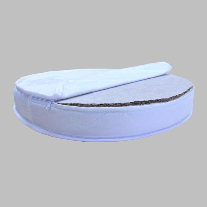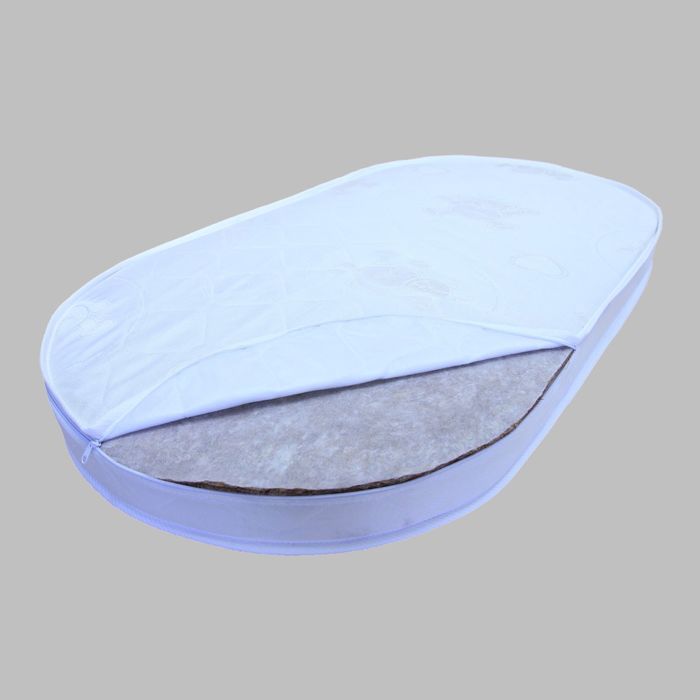 В матрасе используется кокосовая койра, которая пропускает воздух, не гниёт, не впитывает запахи и влагу. Благодаря такому материалу одна половина данной модели жёстче второй. Новорождённого располагайте на мягкой стороне, а когда позвоночник малыша окрепнет, переверните изделие.