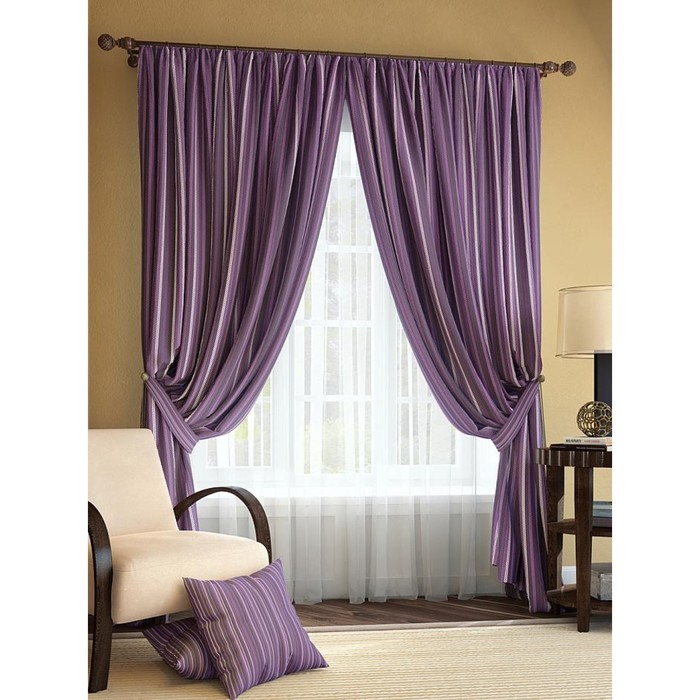 Комплект штор «Палис», размер 220х280 см - 2 шт и 2 подхвата, цвет фиолетовый