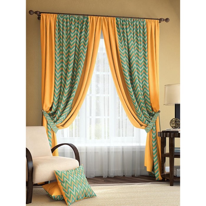 Комплект штор «Понд», размер 220х280 см - 2 шт и 2 подхвата, цвет жёлто-оранжевый