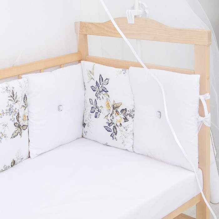 Комплект в кроватку (10 предметов), принт голубые цветы 35