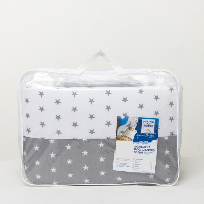 Комплект в кроватку 7 пр. "День и ночь" (борт из 4-х частей), цвет серый, бязь хл100%