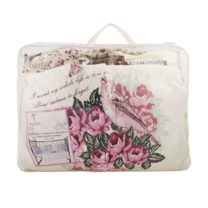 Комплект в кроватку "Эдельвейс" (6 предметов), цвет розовый 10010