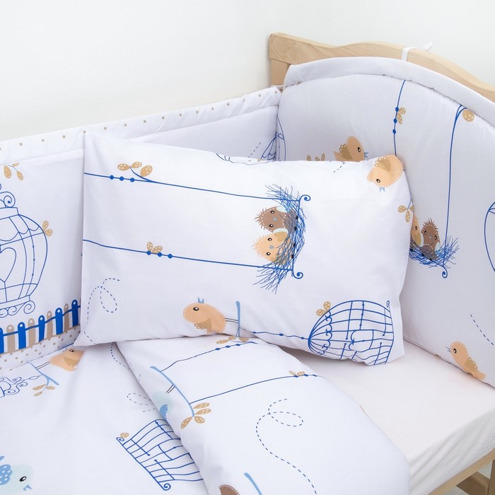 Комплект в кроватку "Пташки" (6 предметов), цвет голубой 31032