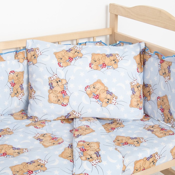 Комплект в кроватку "Спящие мишки" (6 предметов), цвет голубой 615/1
