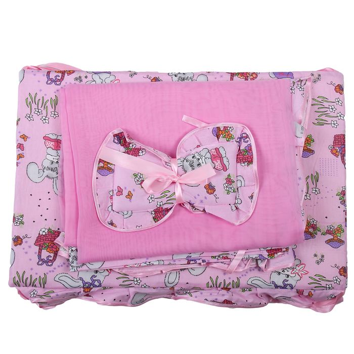 Комплект в кроватку "Зайчики" (2 предмета), цвет розовый с рюшей (арт. 1532)