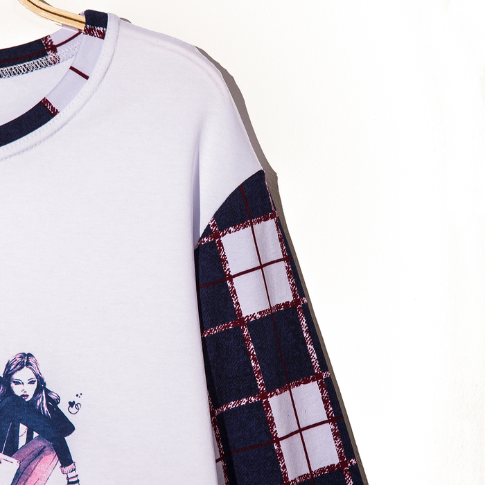 Комплект женский (джемпер, брюки) м-366, цвет синий/белый, клетка, р.52, рост 164 — выбор стильных людей. Вещь изготовлена из качественных и безопасных материалов, а над дизайном работала команда настоящих профессионалов.