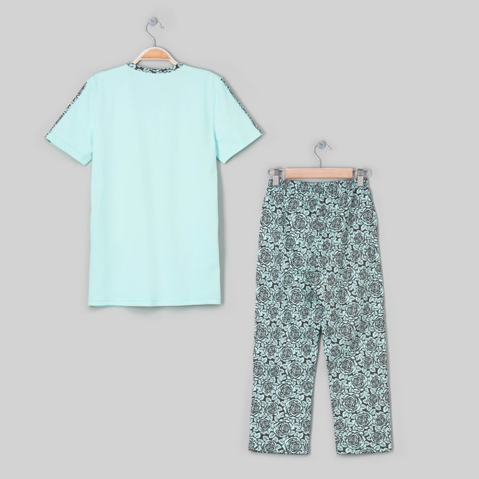 Комплект женский (футболка, бриджи) цвет зелёный, р-р 48