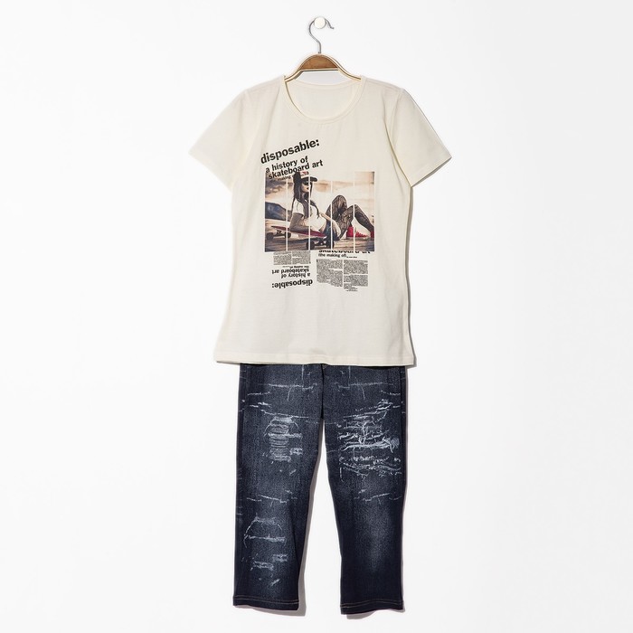 Комплект женский (футболка, бриджи) ТК-448 цвет синий , р-р 44 — выбор стильных людей. Вещь изготовлена из качественных и безопасных материалов, а над дизайном работала команда настоящих профессионалов.