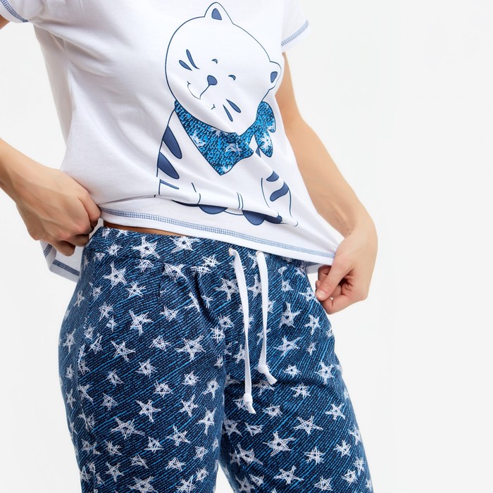 Комплект женский (футболка, брюки) Матроскин цвет синий, р-р 48 — выбор стильных людей. Вещь изготовлена из качественных и безопасных материалов, а над дизайном работала команда настоящих профессионалов.