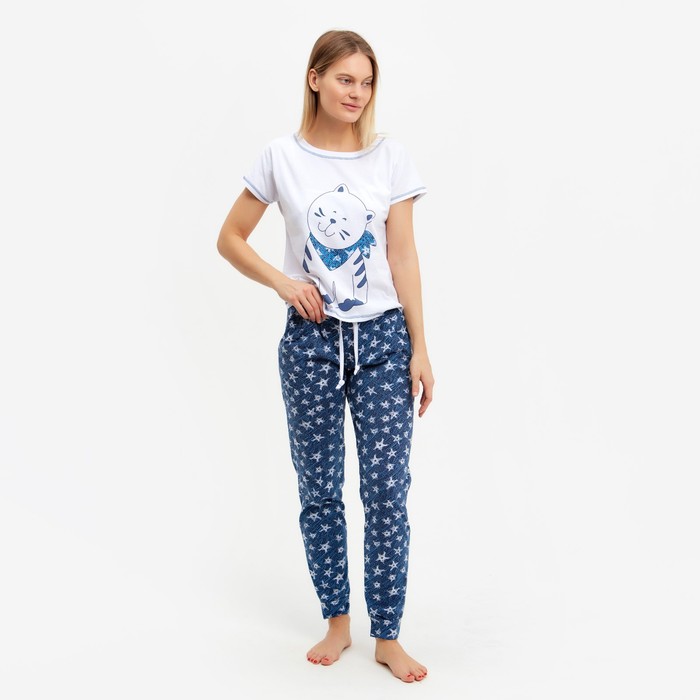 Комплект женский (футболка, брюки) Матроскин цвет синий, р-р 50 — выбор стильных людей. Вещь изготовлена из качественных и безопасных материалов, а над дизайном работала команда настоящих профессионалов.