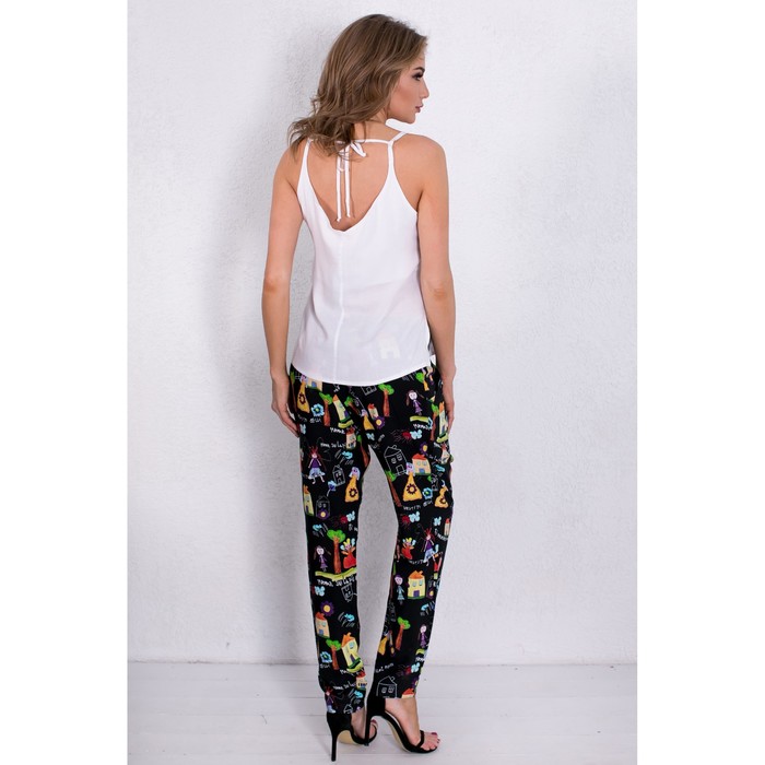 Комплект женский (майка, брюки) 171602 цвет молочный/ чёрный, р-р 50 (XL) вискоза