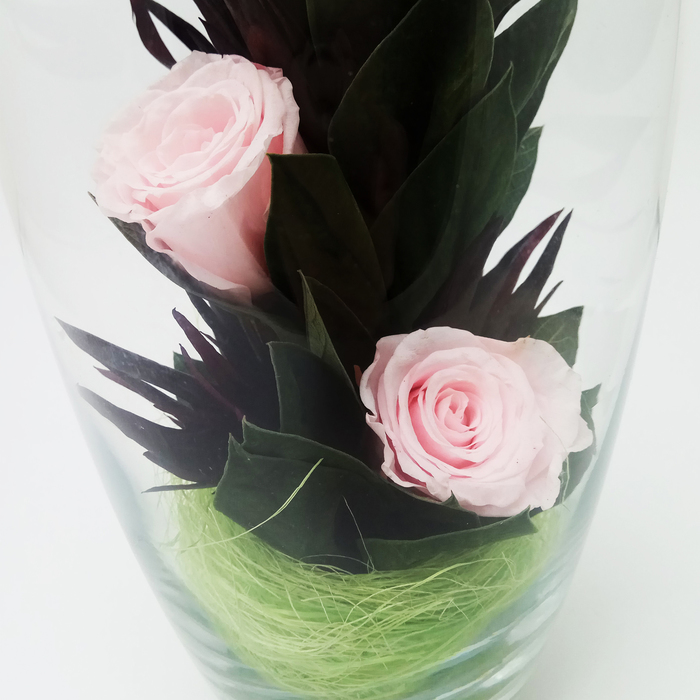 Композиция в вазе "Мунглинг", розы светло-розовые, 10 х 10 х 25 см