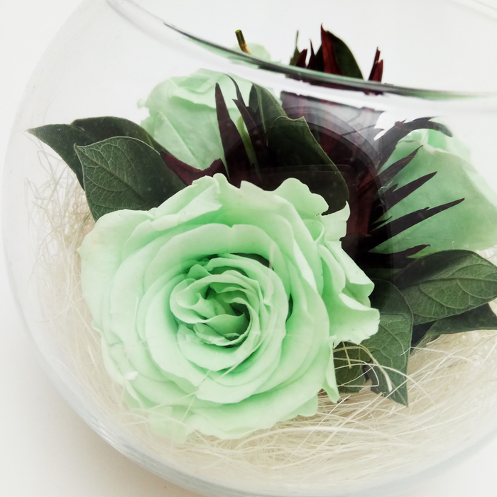 Композиция в вазе, розы фисташкаовые, 12 х 12 х 10 см