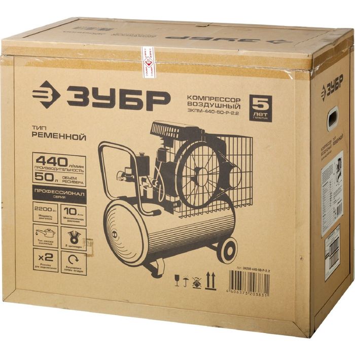 Компрессор "ЗУБР" ЗКПМ-440-50-Р-2.2, воздушный, поршневой, масляный, 50л,10Атм, 2200Вт, 220В