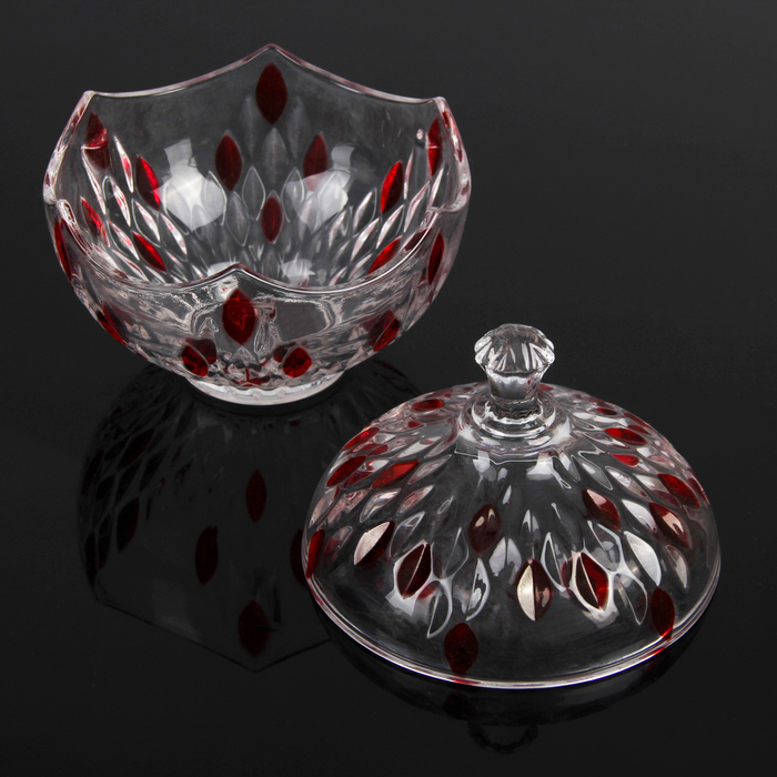 Конфетница 700 мл "Адель", с крышкой, цвет красный
