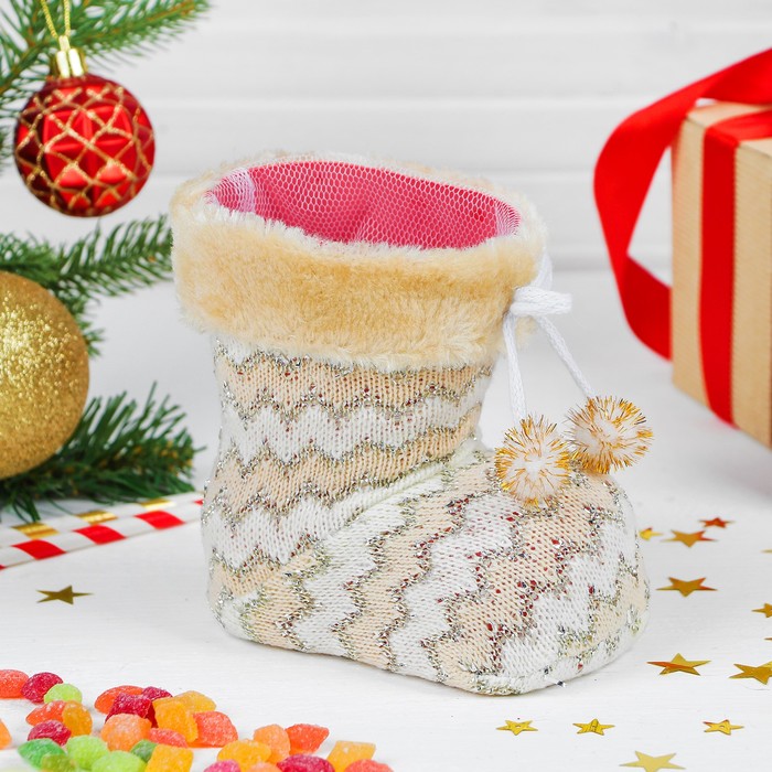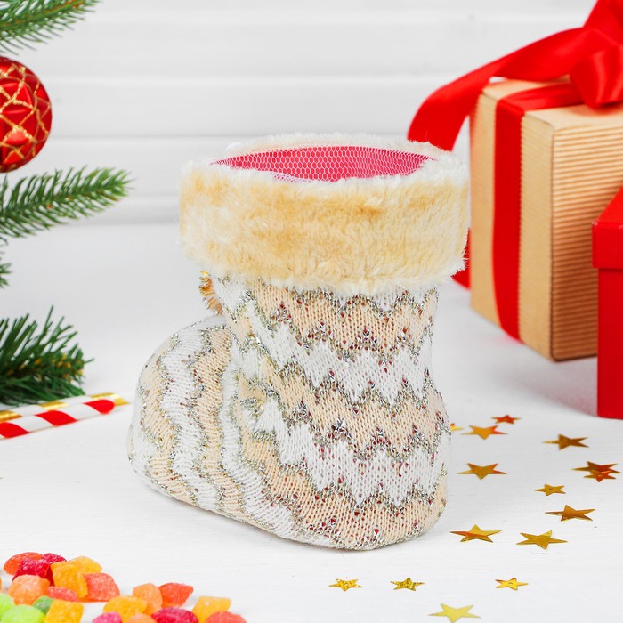 Конфетница "Сапожок" бежевый с помпонами, на завязках, вместимость 400 г