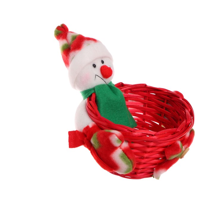 Конфетница "Снеговик наряд в клеточку" с корзинкой, вместимость 100 г