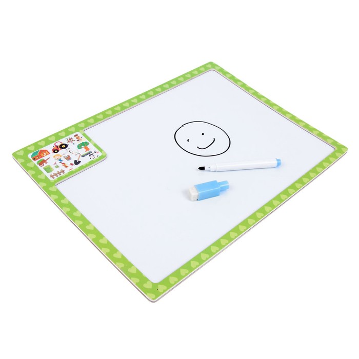 Конструктор магнитный двусторонний "Ферма", 2 мелка и маркер в комплекте